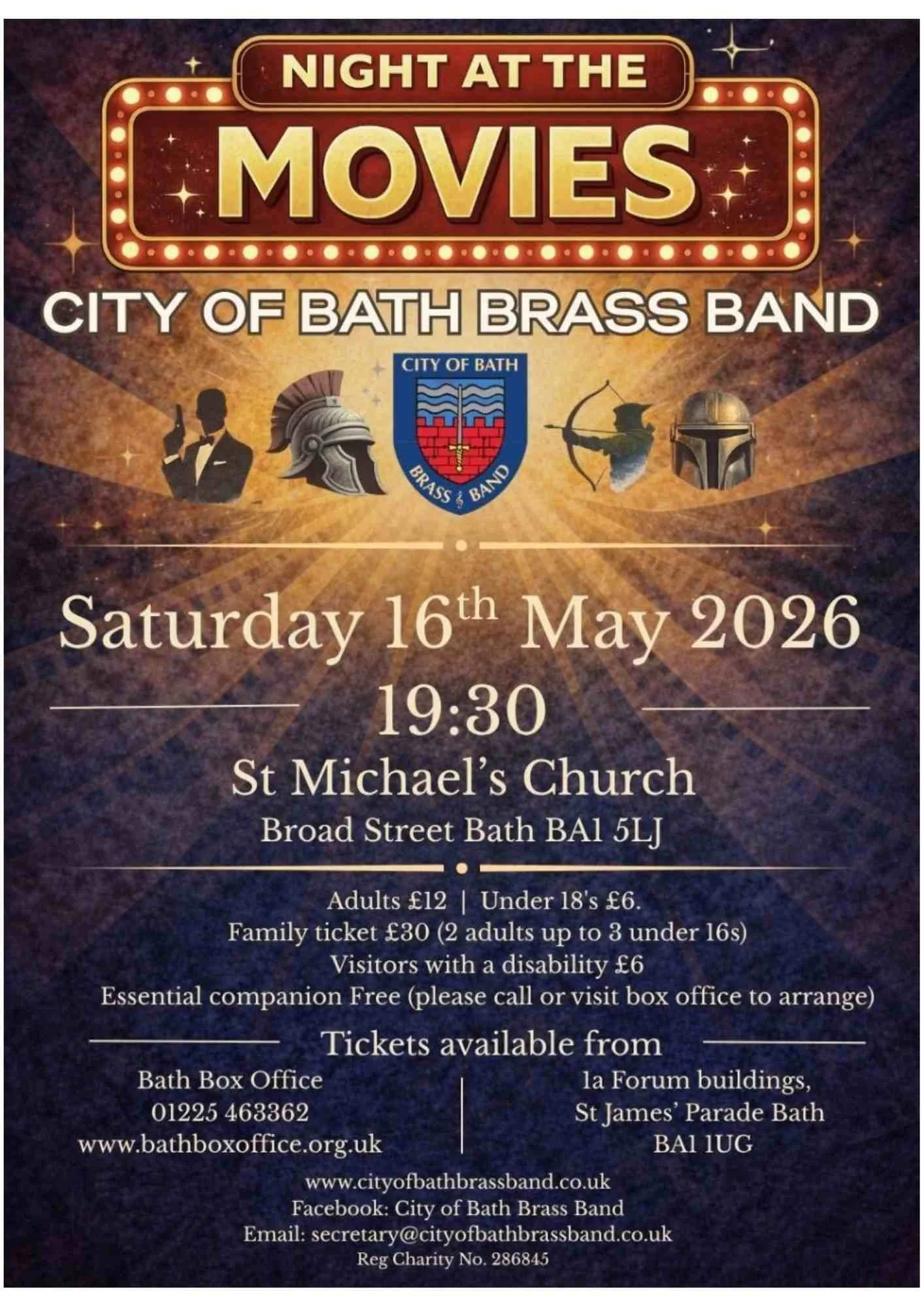 Experience the thrill of the big screen as the City of Bath Brass Band presents a spectacular night of iconic film music performed live to pictures.